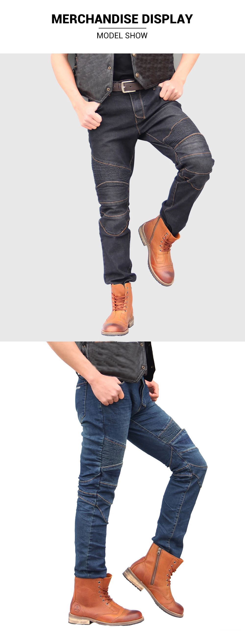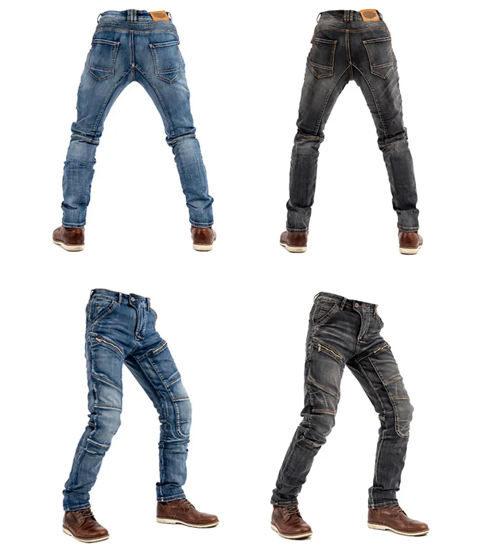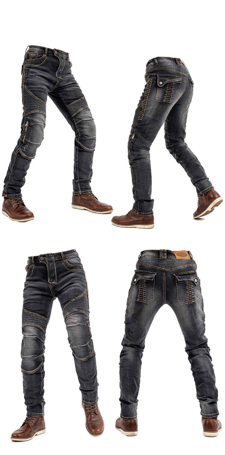 Brand new motorcycle jeans, the pursuit of the original denim style, the fabric is thick, the sewing is firm, the tear strength is high, and it has a good washing effect. It is one of the high-end denim fabrics.