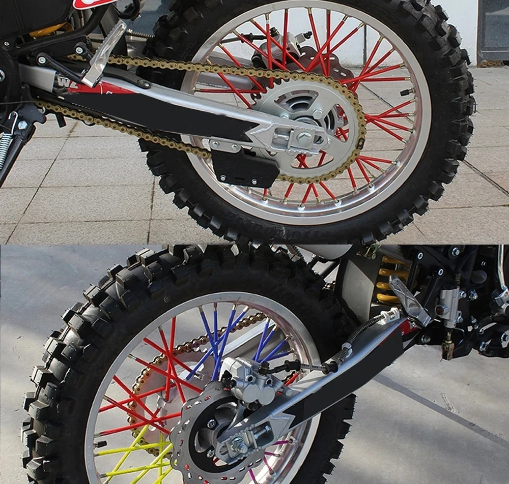 This motorcycle spoke cover is a new, clean and straight tube to protect the spoke from dirt and it can beautify your motorcycle in the meantime. The spoke cover is not only flexible and durable, but also easy to mount and dismantle in a few seconds. And there are a variety of optional colors for your choices. Wish you a happy purchase!
