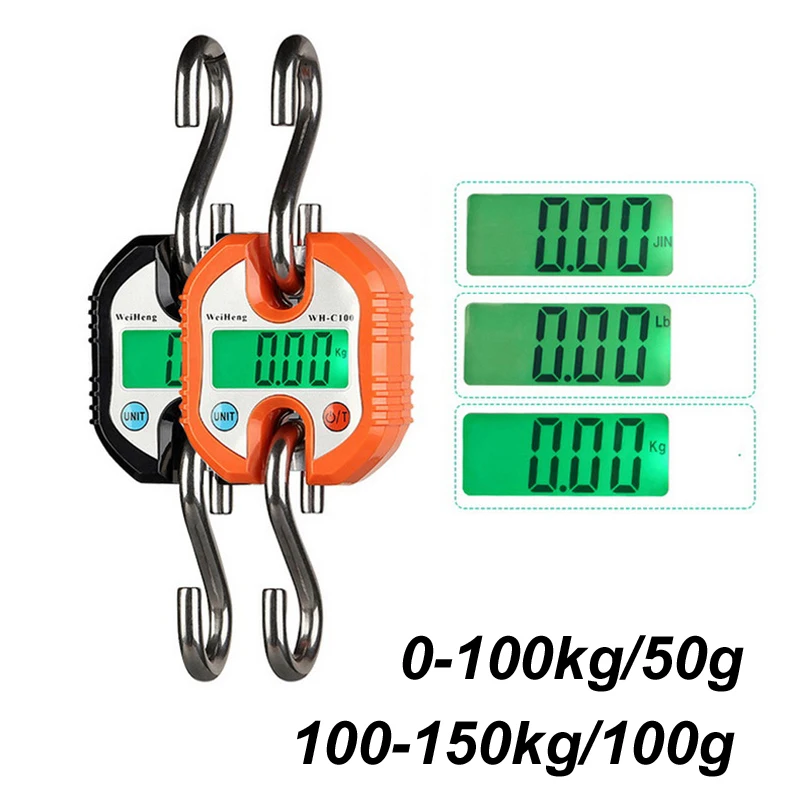 Electronic Hanging Scales 0-100kg/50g,100-150kg/100g Digital Stainless Steel Hook Weighing LCD Crane Scale Loop Fish Heavy Dut